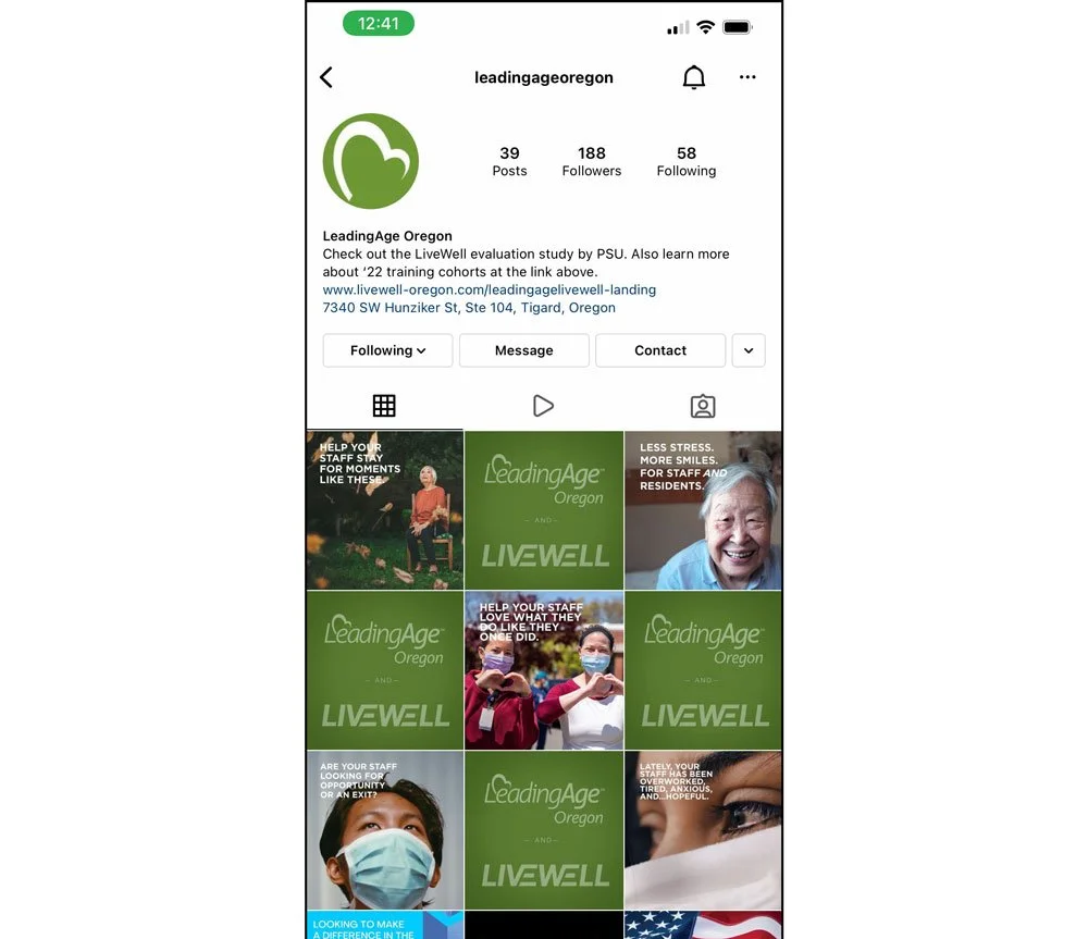 For nearly a decade, LiveWell has worked to improve staff morale, communication, and retention. It can also help onboard new staff by capturing and sharing effective learning. The LiveWell team is here to help leaders and staff bring its benefits to all long-term care facilities. Please let those in your network know that applications are being accepted for the next virtual learning cohort, planned for Winter 2022. Oregon DHS is fully funding the training for communities located in the state. Check it out. You can learn more and sign up today on their website.